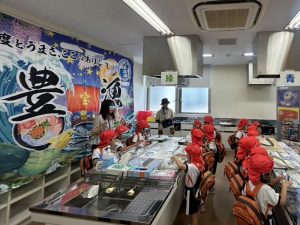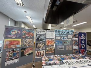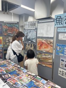 2025.08.05 イベント情報 福島区食育展 食育なつまつり 8月5日(火)に福島区役所にて「食育なつまつり」に出展しました。内容はお魚タッチ体験と絵画コンクール入賞作品の展示でした。子どもから大人までたくさんの方々に楽しんでいただきました。